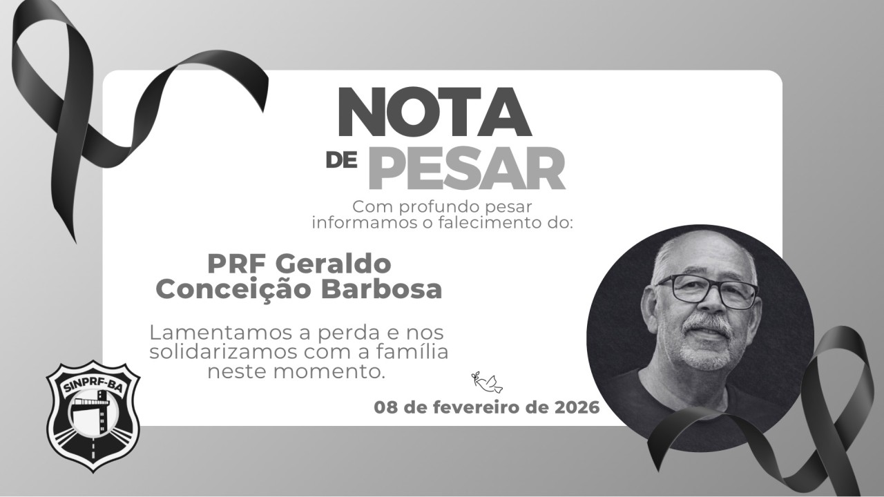 O Sindicato dos Policiais Rodoviários Federais no Estado da Bahia (SINPRF/BA) manifesta profundo pesar pelo falecimento do colega Policial Rodoviário Federal aposentado Antônio Fernandes Ferreira, ocorrido de forma trágica na noite desta segunda-feira, 02 de fevereiro, no estado do Rio Grande do Norte.